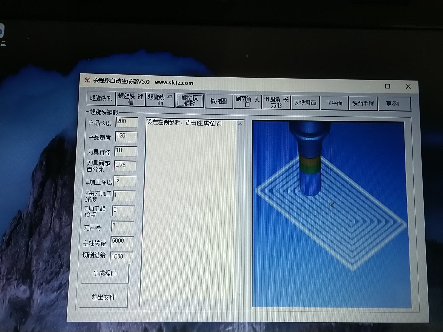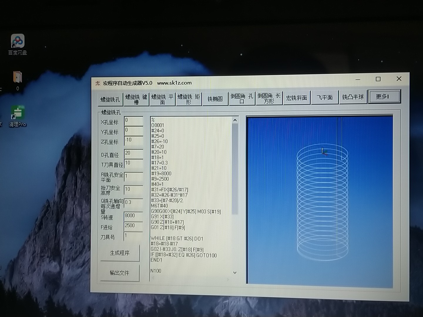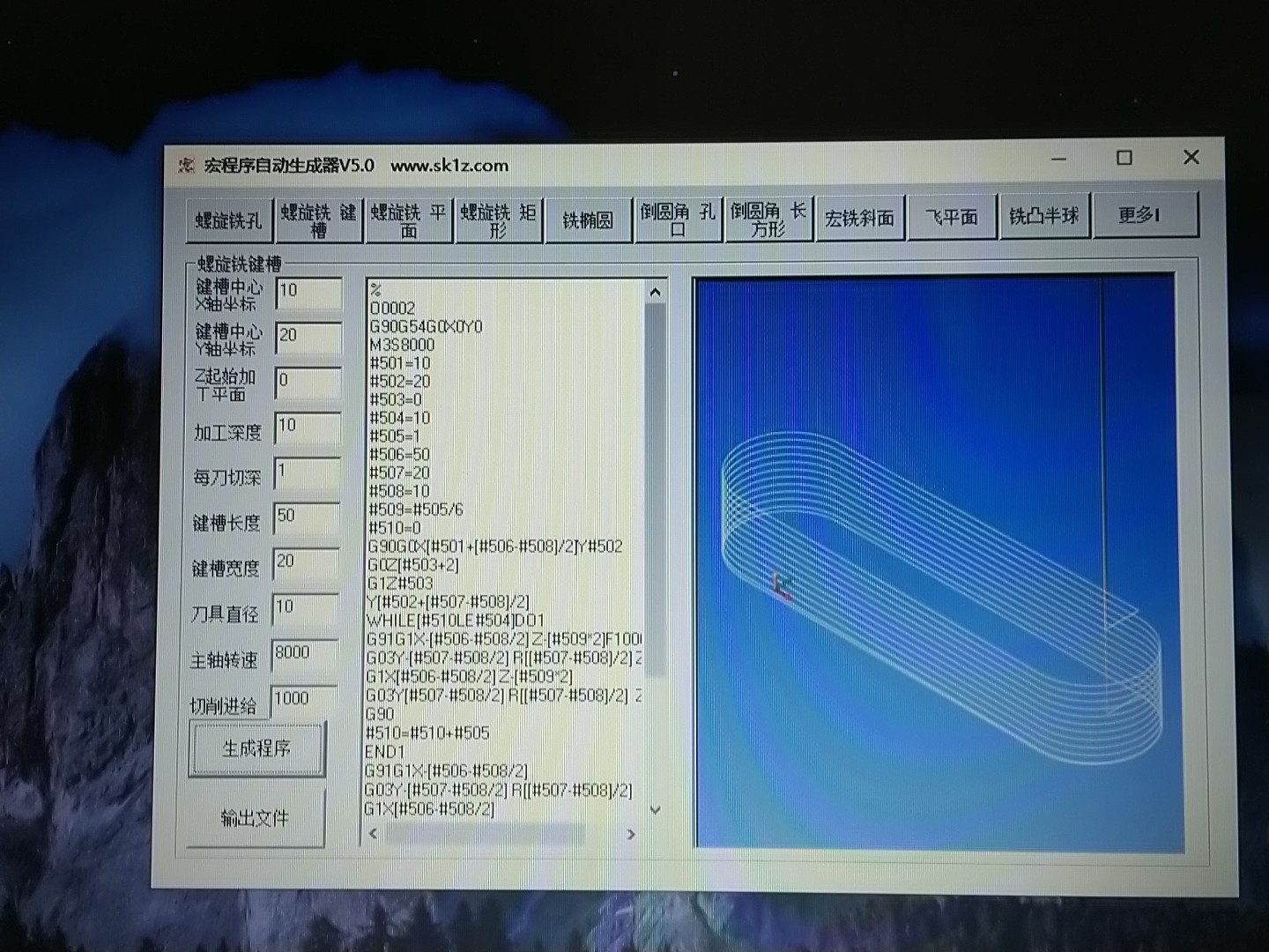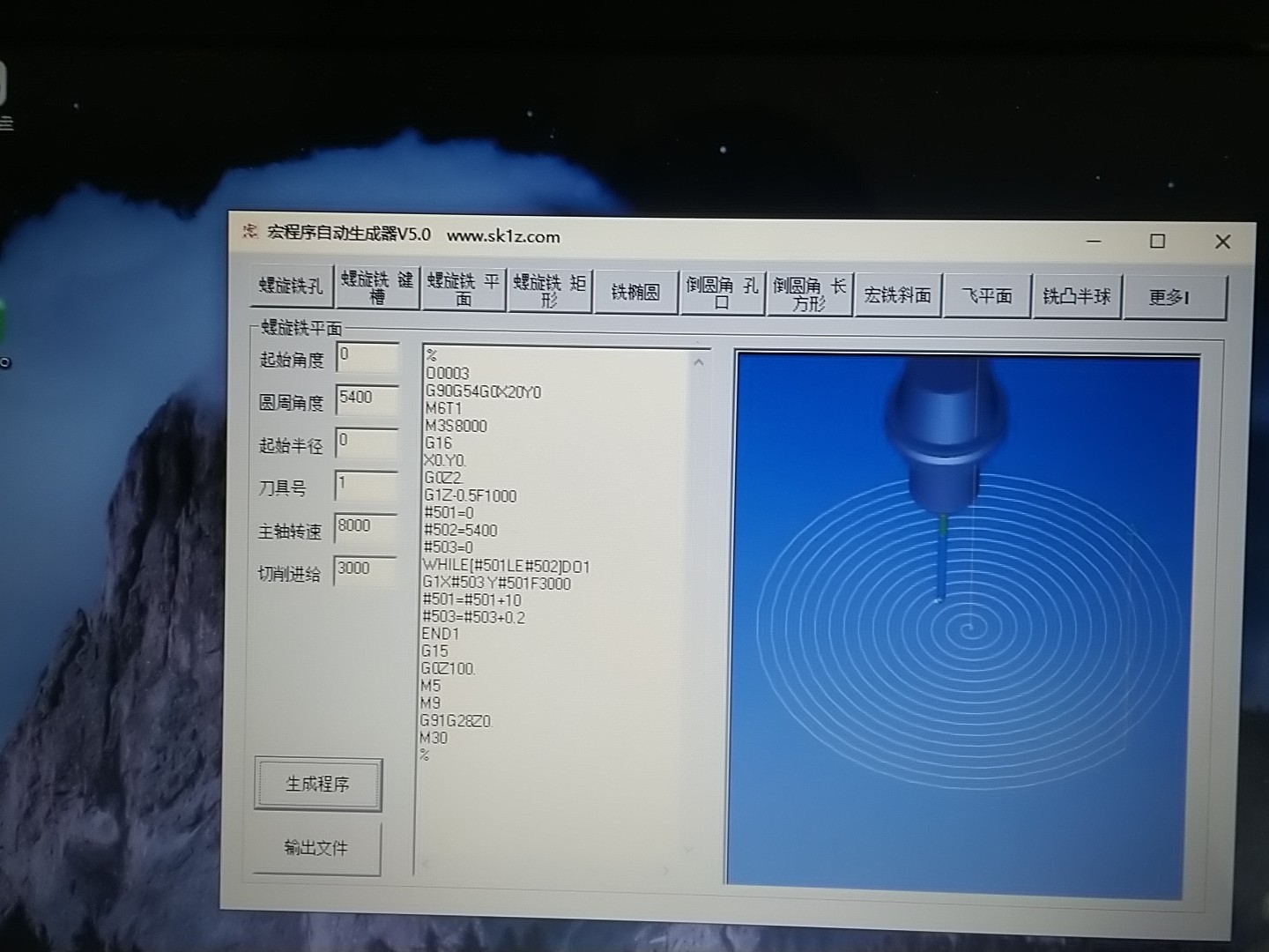 该工具涵盖多种常用加工场景的宏程序生成能力,包括螺旋铣孔、螺旋铣平面、螺旋铣矩形、圆周沉头孔加工、椭圆铣削、孔口倒圆角处理、长方形倒圆角、宏指令铣斜面、飞平面加工、标准矩形铣削、凹凸半球面铣削等。