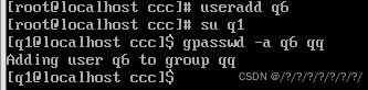 把q1设置为qq组的管理员:gpasswd -A q1 qq