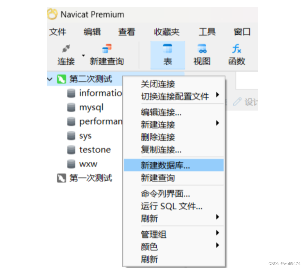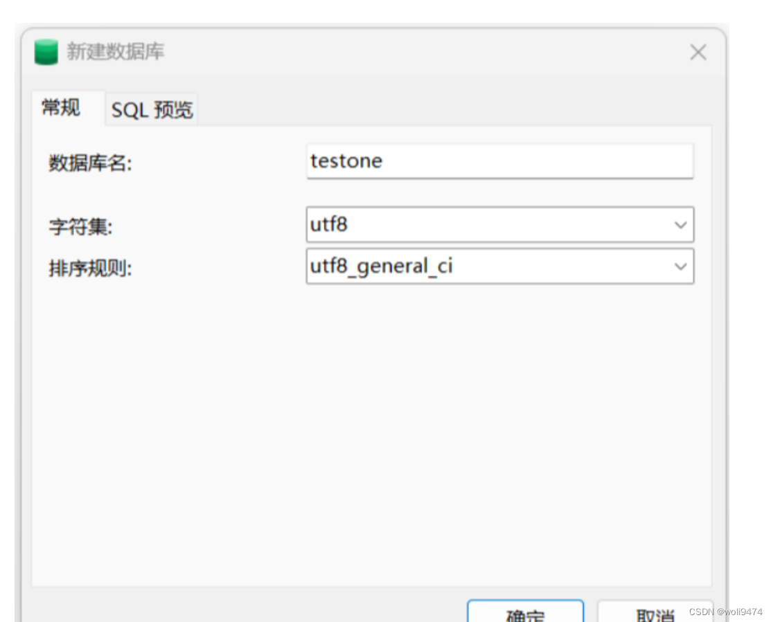 *创建数据库,测试连接后打开它,右键新建数据库 ,数据库名testone,字符集utf8,排序规则看图