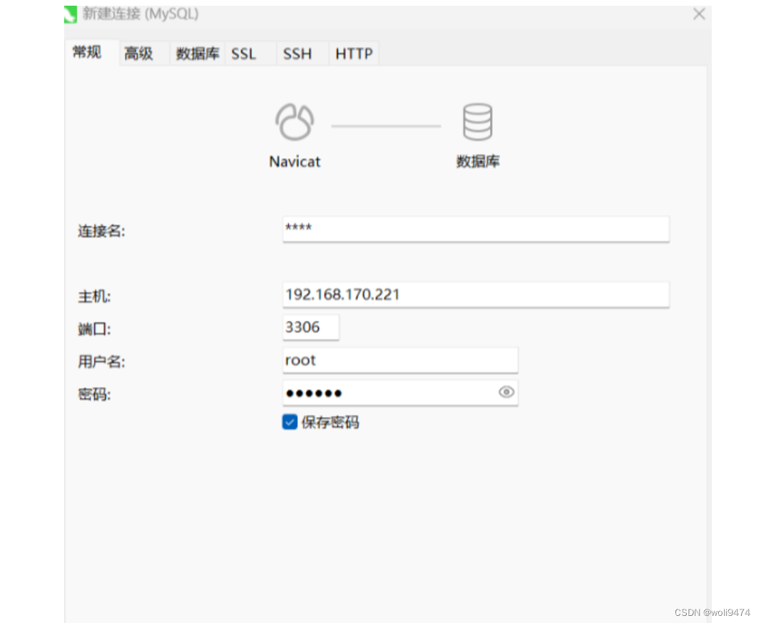 任意输入连接名,主机填自己电脑IP地址(在设置网络和Internet,Wlan硬件属备中),密码为自己设置的Mysql密码 ,