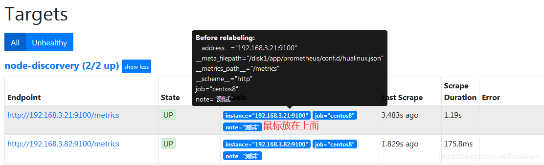 "targets": [ "192.168.3.82:9100","192.168.3.21:9100"],