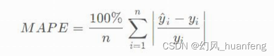 MAPE 为0%表示完美模型,MAPE 大于 100 %则表示劣质模型。相比于RMSE,MAPE相当于把每个点的误差进行了归一化,降低了个别离群点带来的影响。