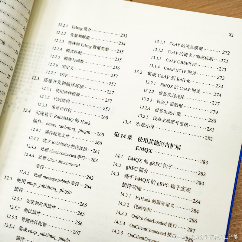 特别值得关注的是第14章的EMQX插件开发案例,作者以Erlang语言实现Grpc Hook插件,将设备消息转发至RabbitMQ,这个案例完整展示了EMQX插件系统的扩展能力。