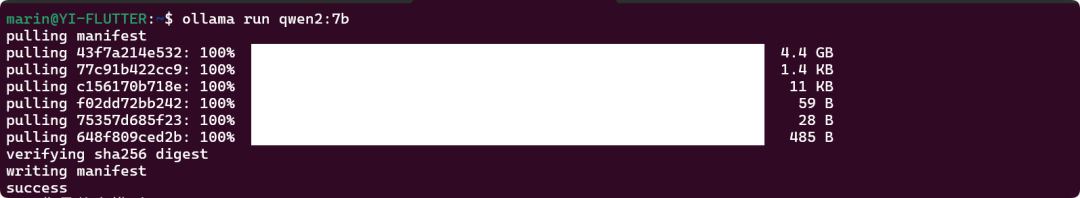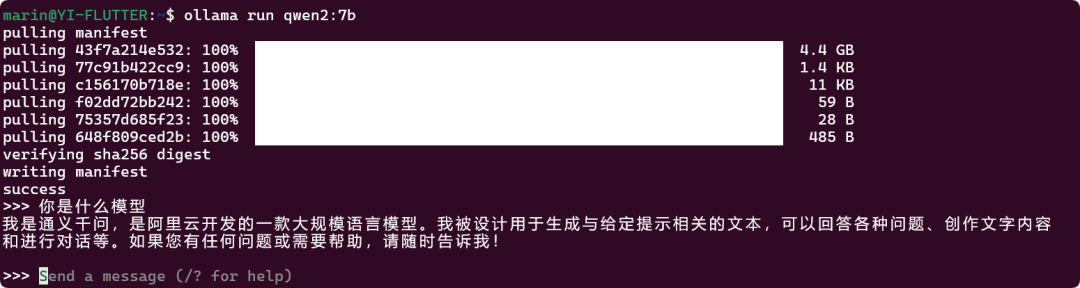 服务启动后我们需要下载模型(以qerw2: 7b为例),我们可以使用以下命令: