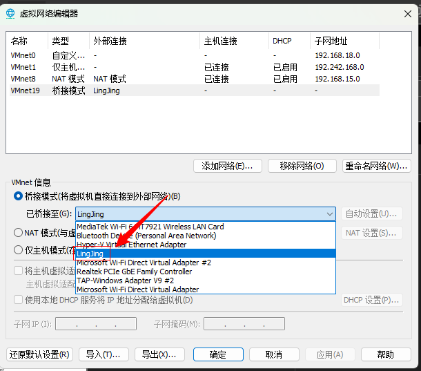 将vm虚拟网络配置桥接到lingjing路由上,然后来到设置