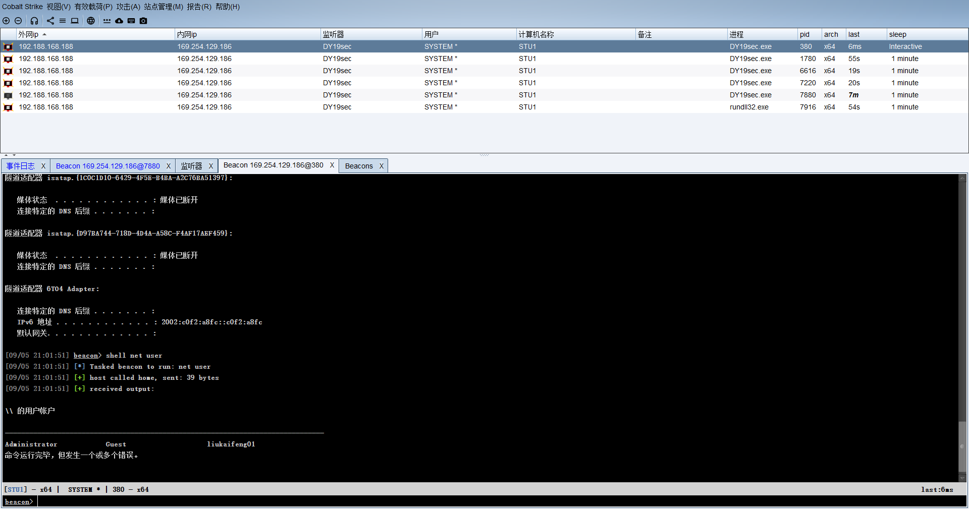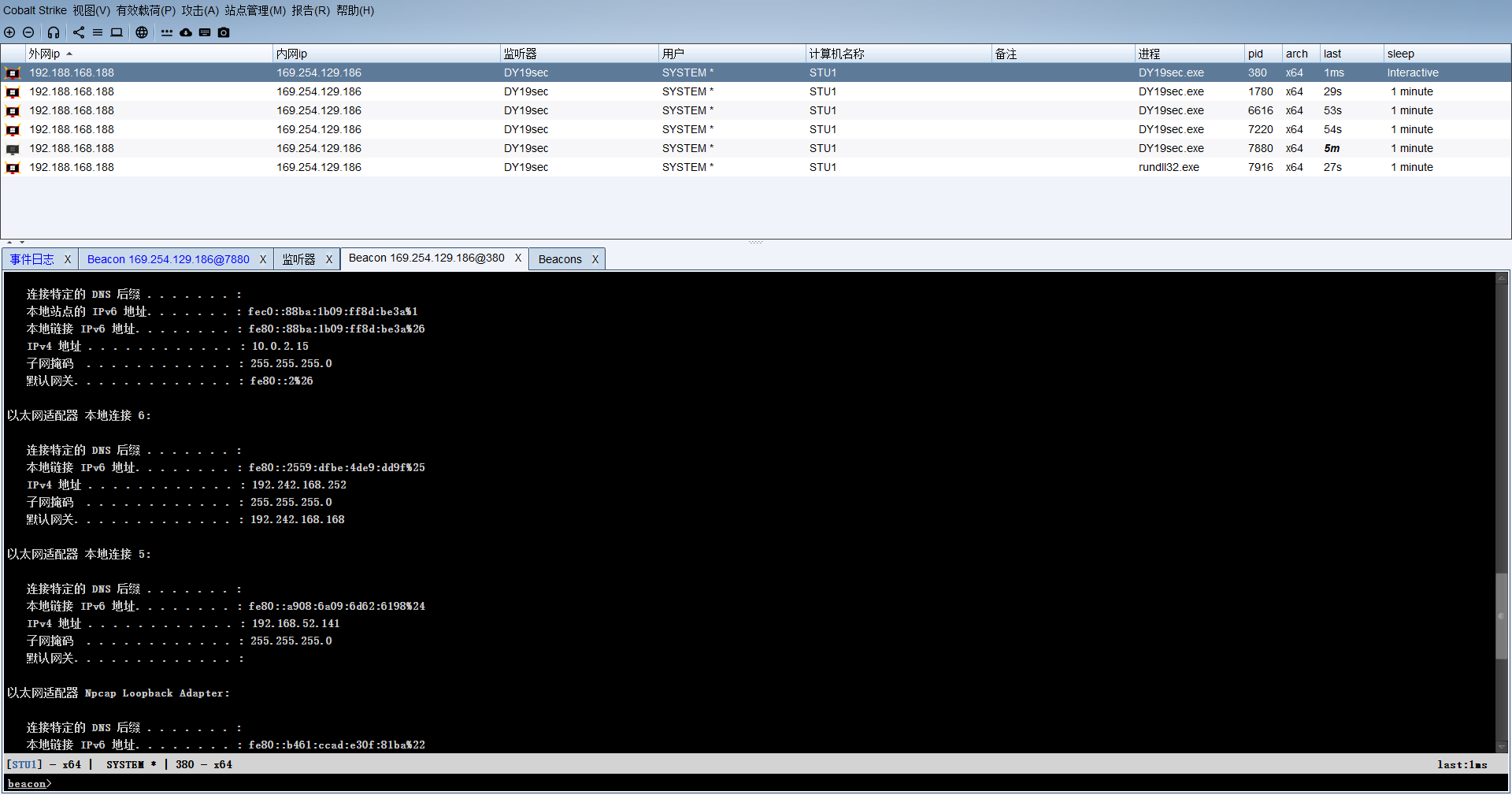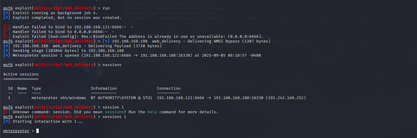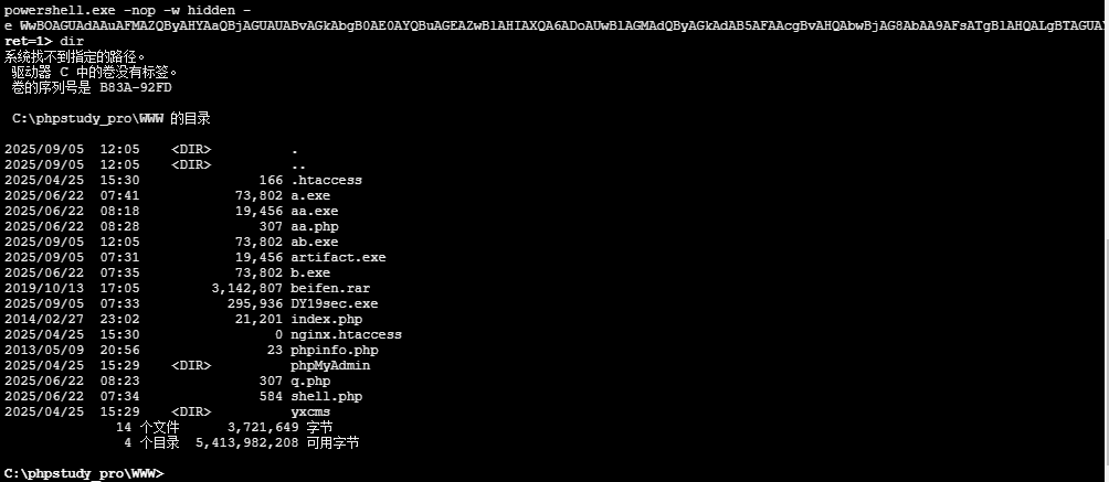然后拿到蚁剑的虚拟终端运行即可msf上线,如果没有,那就再蚁剑终端随便几条命令