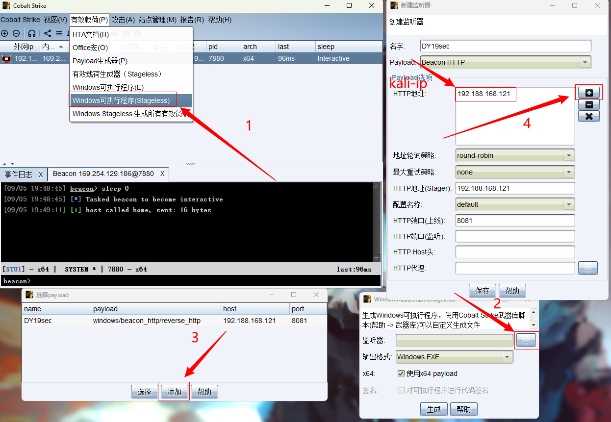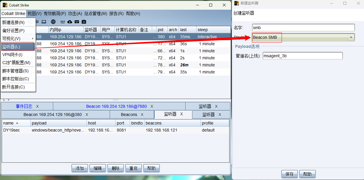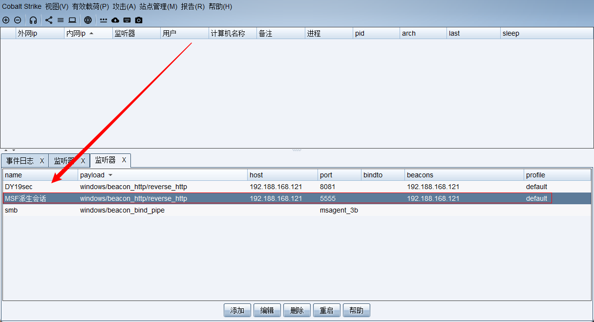 设置PrependMigrate为True,这个设置让MSF前置的shellcode在另一个进程当中运行payload stager,如果被利用的应用程序奔溃或者被用户关闭,这个会帮助Beacon会话存活。