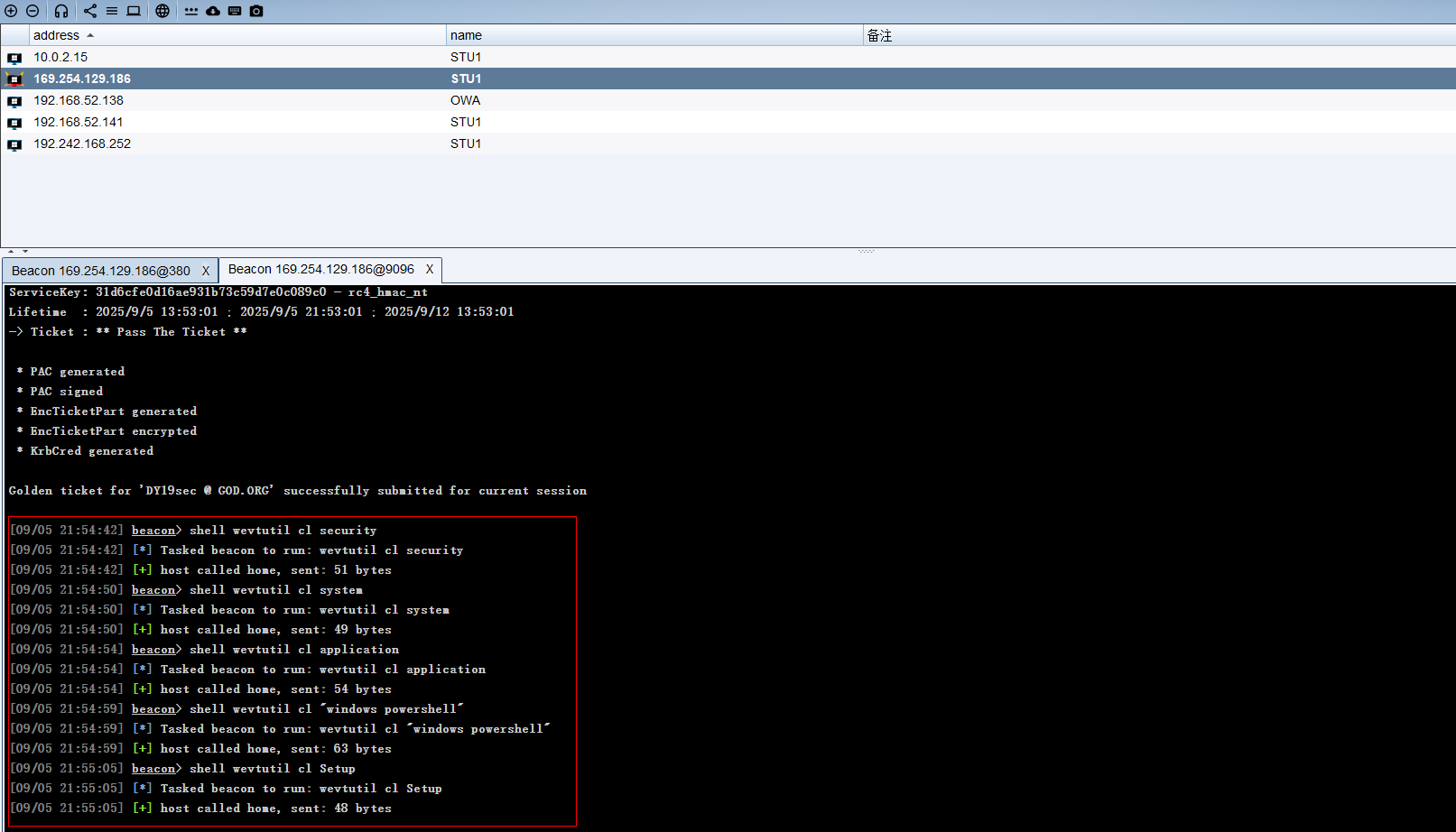 shell wevtutil cl Setup //清除(cl)事件日志中的 "Setup" 事件。