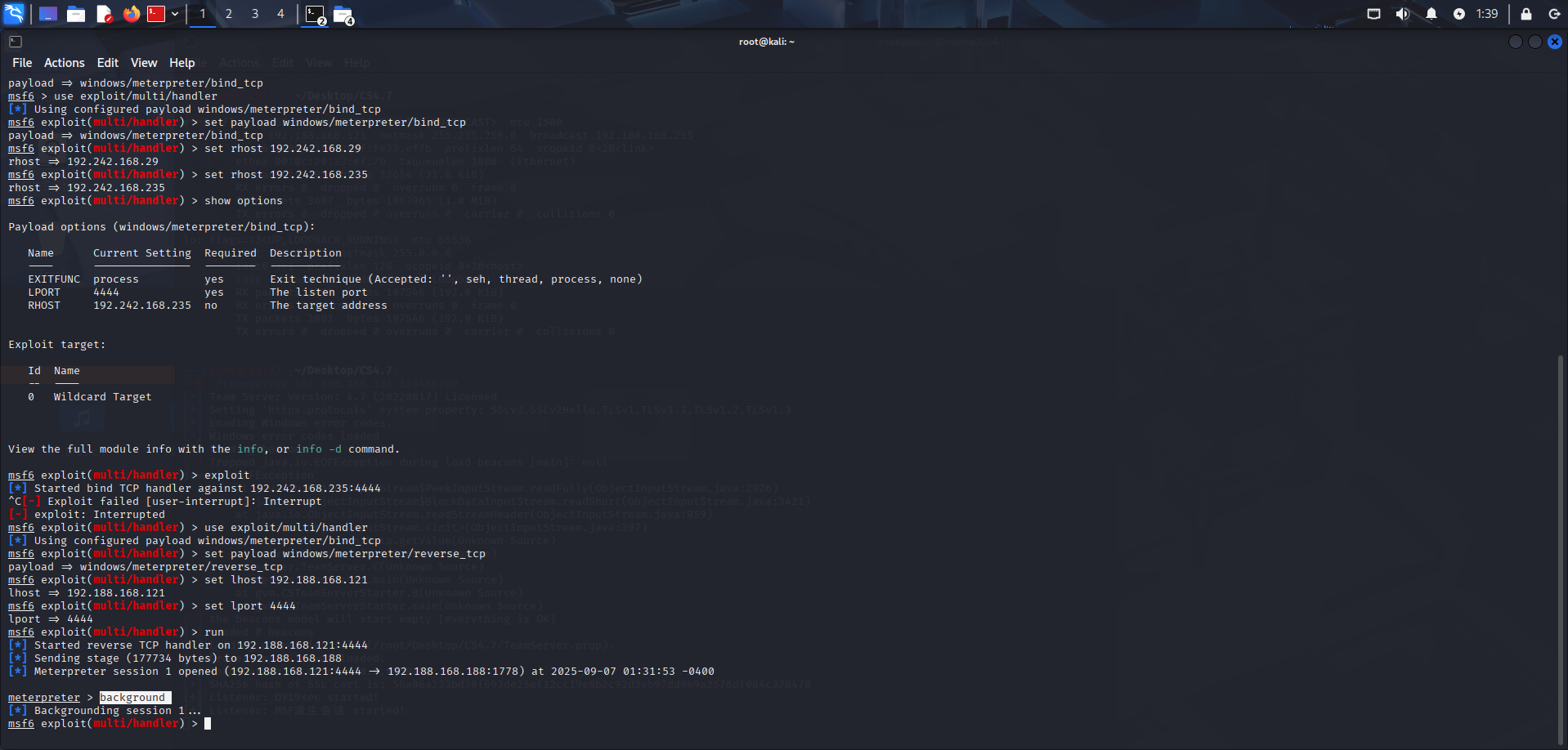 设置DisablePyaloadHandler为True,这个选项会让MSF避免在其内起一个handler来服务你的payload连接,就是告诉MSF我们已经建立了监听器,不需要再新建监听器了