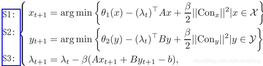 若该优化问题是凸的,则其有等价的对偶问题为,通过迭代如下两步实现该对偶问题的求解