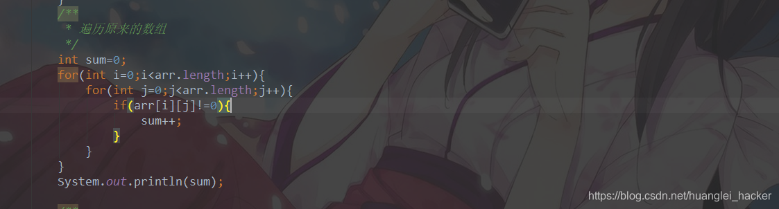 * 1.遍历原有的二维数组,得到有效数据的个数sum