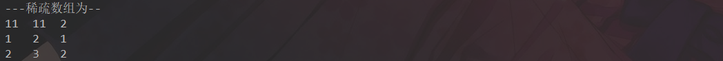 同理。。稀疏数组的第三行则是存的第二个有效数字。。我们可以发现稀疏数组一定是三列。。。。