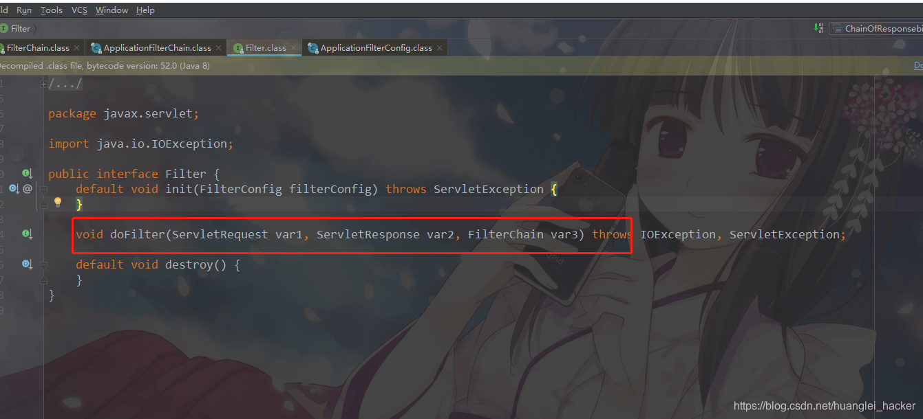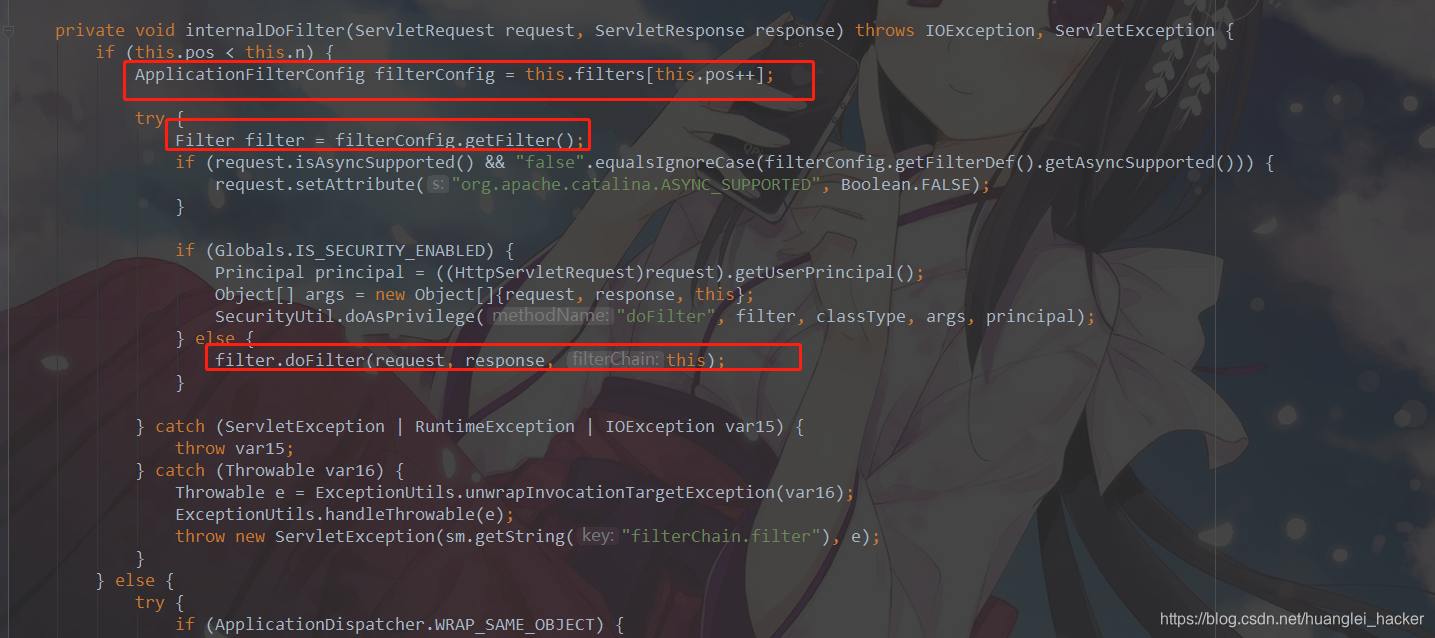 可以发现,每次在获取的filter可能都有所不同,每个filter 做的事情都不一样,,具体看获得的是哪个filter