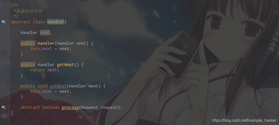 关键代码:Handler 里面聚合它自己,在 HandlerRequest 里判断是否合适,如果没达到条件则向下传递,向谁传递之前 set 进去。