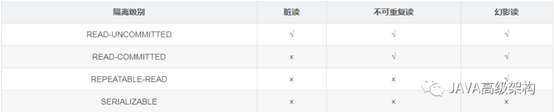 SERIALIZABLE(可串行化):最高的隔离级别,完全服从ACID的隔离级别。所有的事务依次逐个执行,这样事务之间就完全不可能产生干扰,也就是说,该级别可以防止脏读、不可重复读以及幻读。