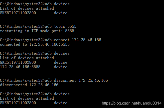 C:\Windows\system32>adb devices List of devices attached 8KE5T19711002800 device
