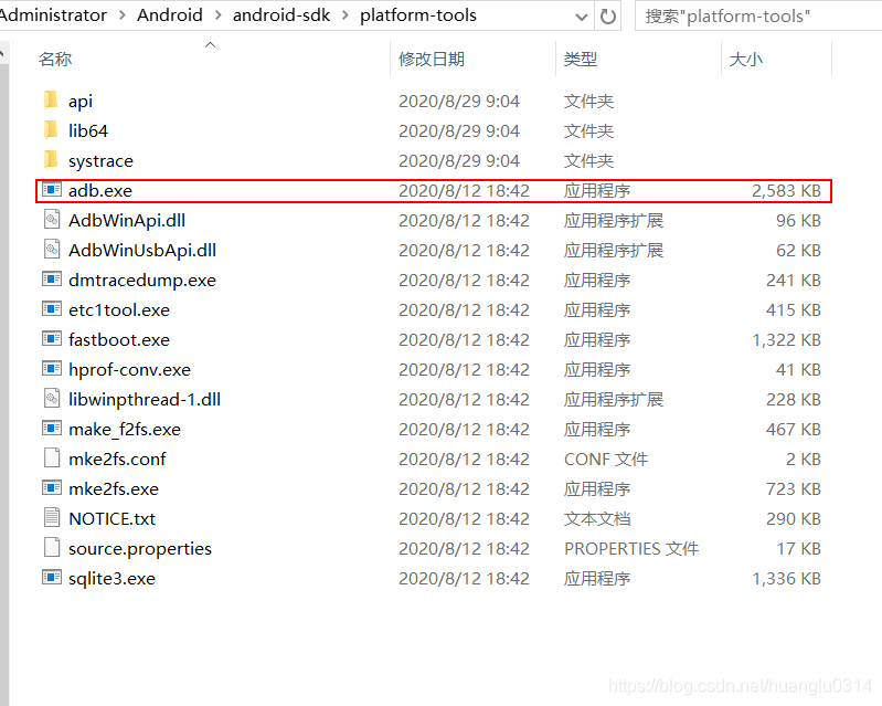 已经下载安装配置好Android SDK的设备,adb工具位于Android SDK安装目录下的platform-tools文件夹下,