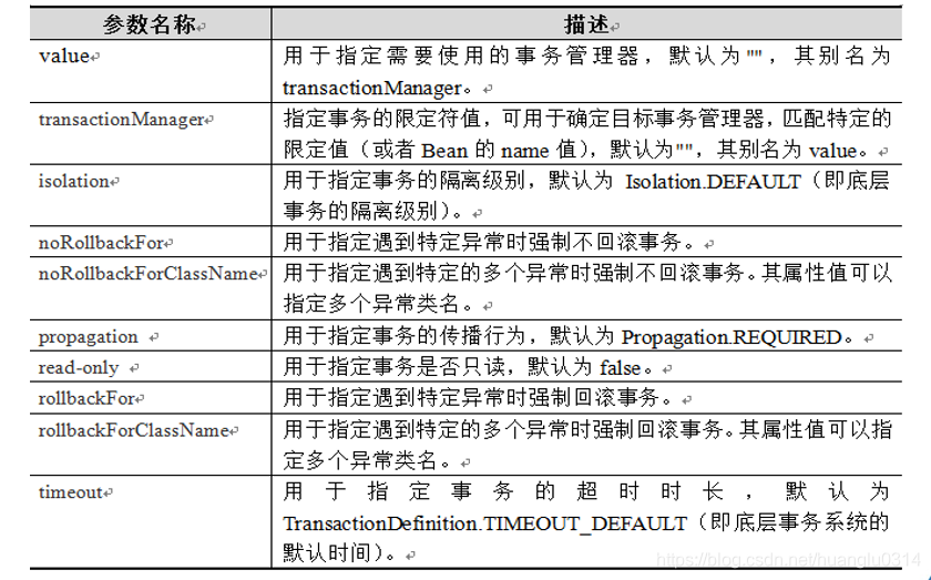 - TransactionDefinition接口是事务定义(描述)的对象,该对象中定义了事务规则,并提供了获取事务相关信息的方法,具体如下: