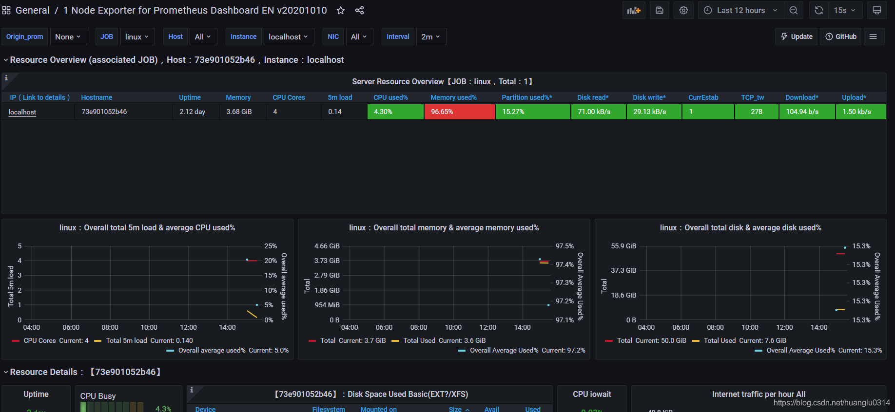 我们选择ID为11074的模板文件,下载链接为:1 Node Exporter for Prometheus Dashboard EN v20201010 dashboard for Grafana | Grafana Labs