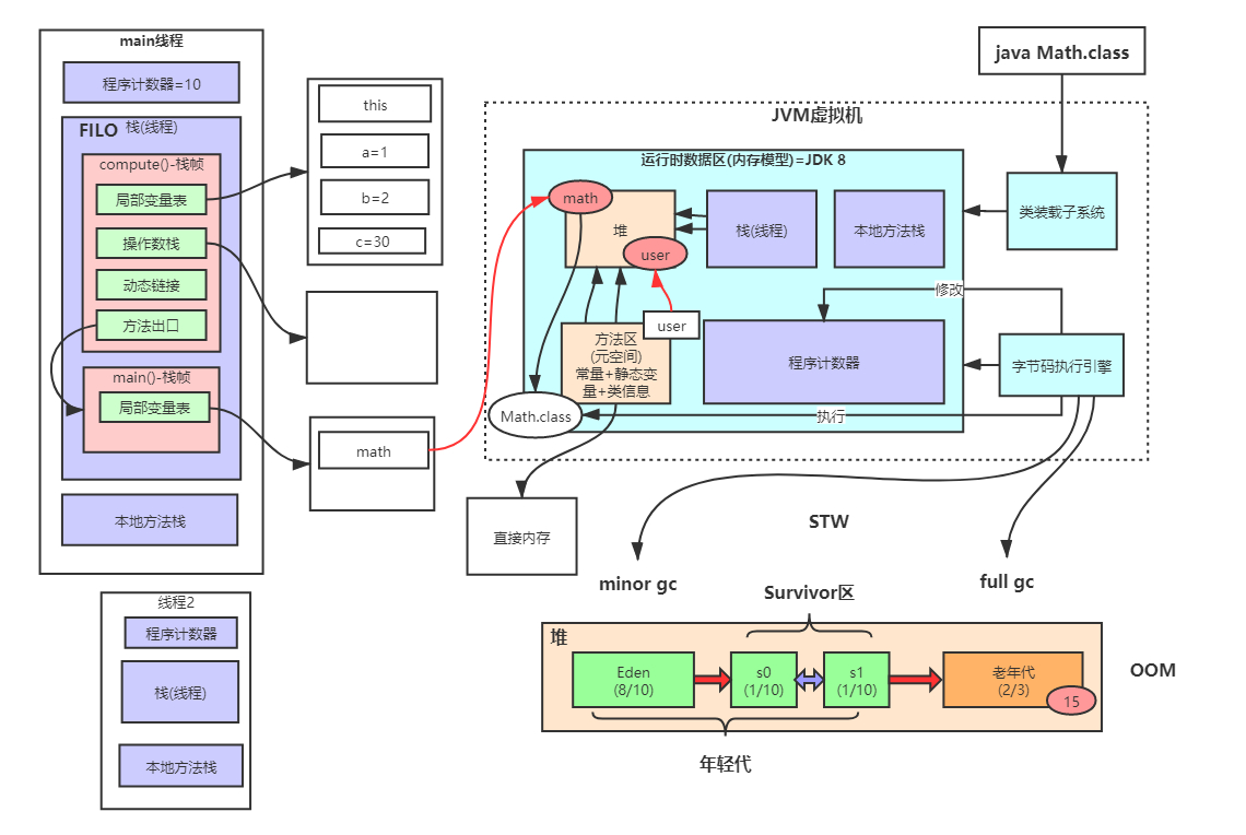 -Xss设置越小count值越小,说明一个线程栈里能分配的栈帧就越少,但是对JVM整体来说能开启的线程数会更多