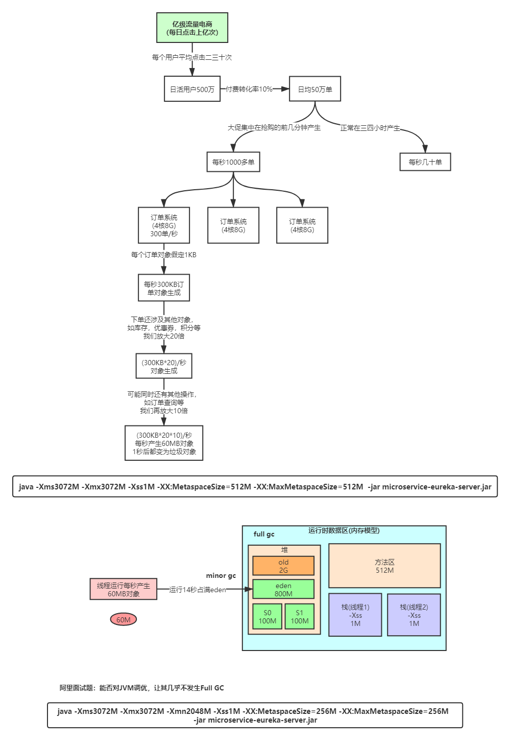 结论:通过上面这些内容介绍,大家应该对JVM优化有些概念了,就是尽可能让对象都在新生代里分配和回收,尽量别让太多对象频繁进入老年代,避免频繁对老年代进行垃圾回收,同时给系统充足的内存大小,避免新生代频繁的进行垃圾回收。