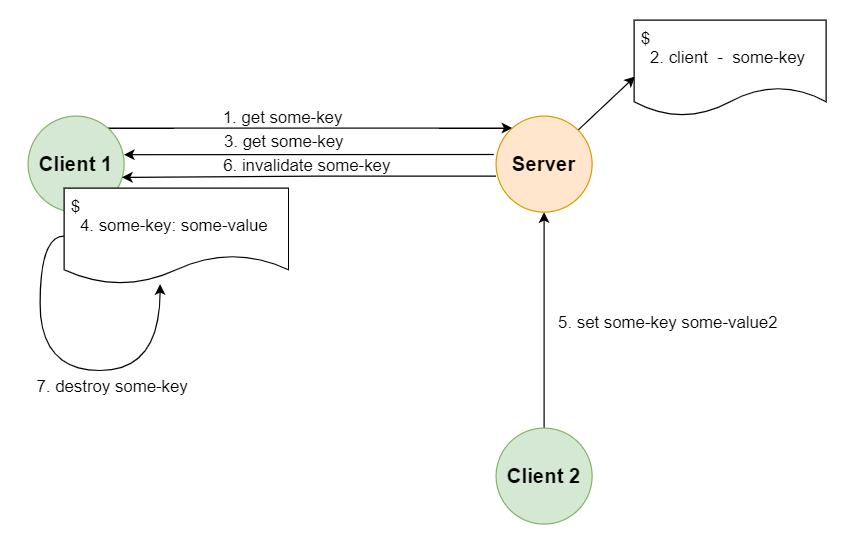 执行流程为, 当客户端访问某个key时,服务端将记录key 和 client ,客户端拿到数据后,进行客户端缓存,这时,当key再次被访问时,key将被直接返回,避免了与redis 服务器的再次交互,节省服务端资源,当数据被其他请求修改时,服务端将主动通知客户端失效的key,客户端进行本地失效,下次请求时,重新获取最新数据。