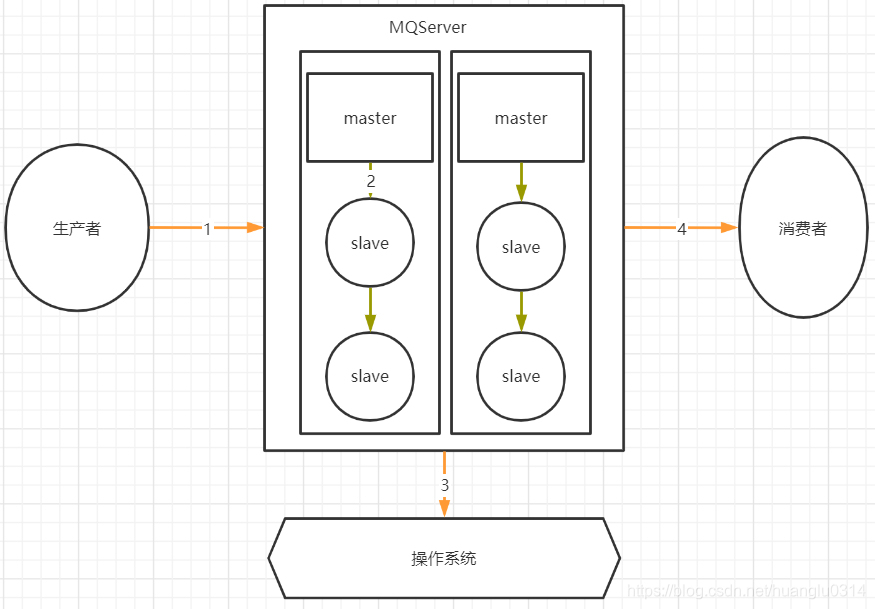 这个图是生产者消息者实际生产上的一个流程图。其中,1,2,4三个场景都是跨网络的,而跨网络就肯定会有丢消息的可能。然后关于3这个环节,通常MQ存盘时都会先写入操作系统的缓存page cache中,然后再由操作系统异步的将消息写入硬盘。这个中间有个时间差,就可能会造成消息丢失。如果服务挂了,缓存中还没有来得及写入硬盘的消息就会丢失。