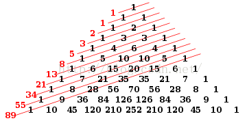 杨辉三角与菲波拉契数列也是有关系的,看以下的图就知道了。