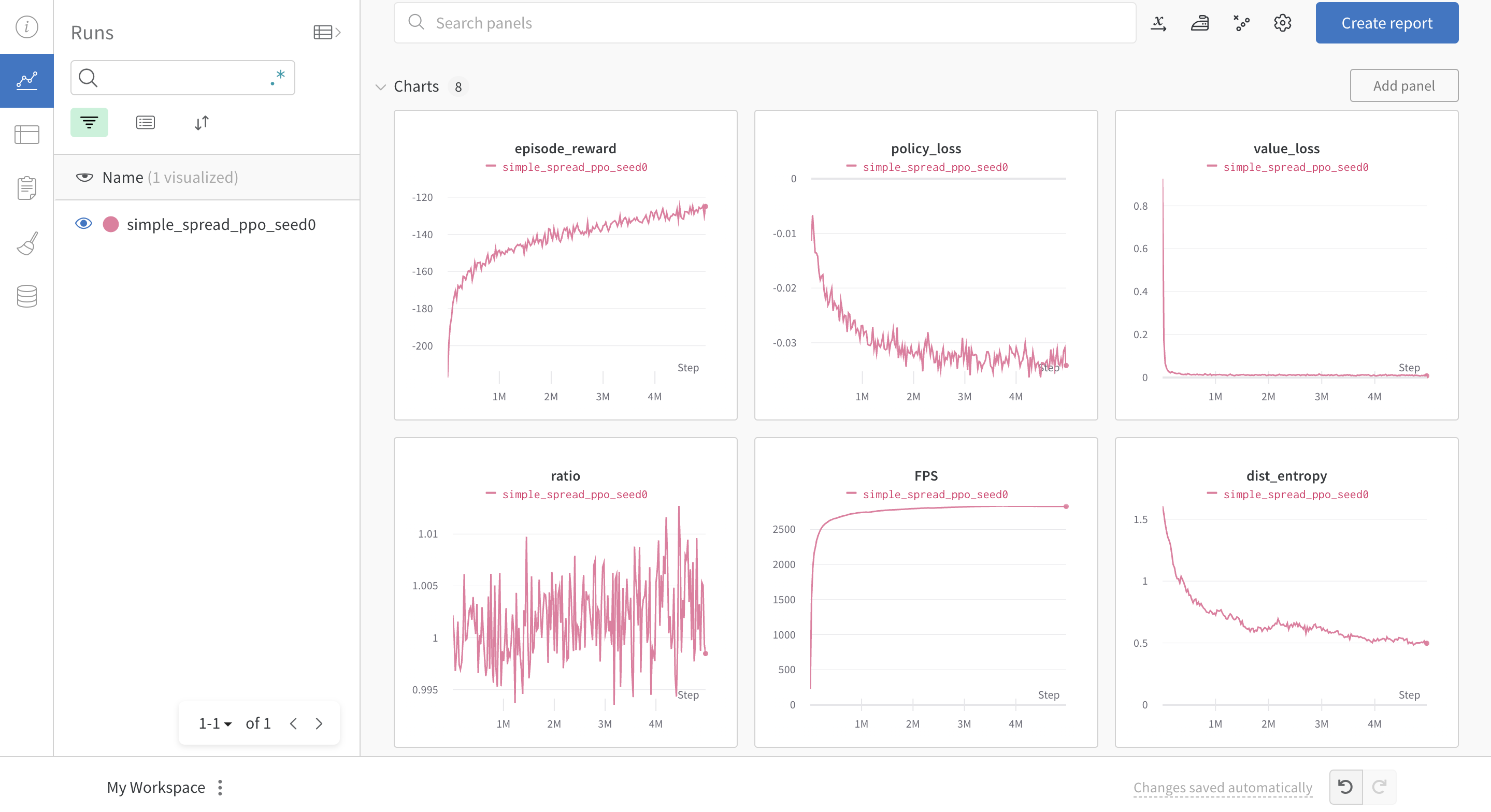 此外,通过OpenRL,用户还可以方便地使用 wandb 来可视化训练过程: