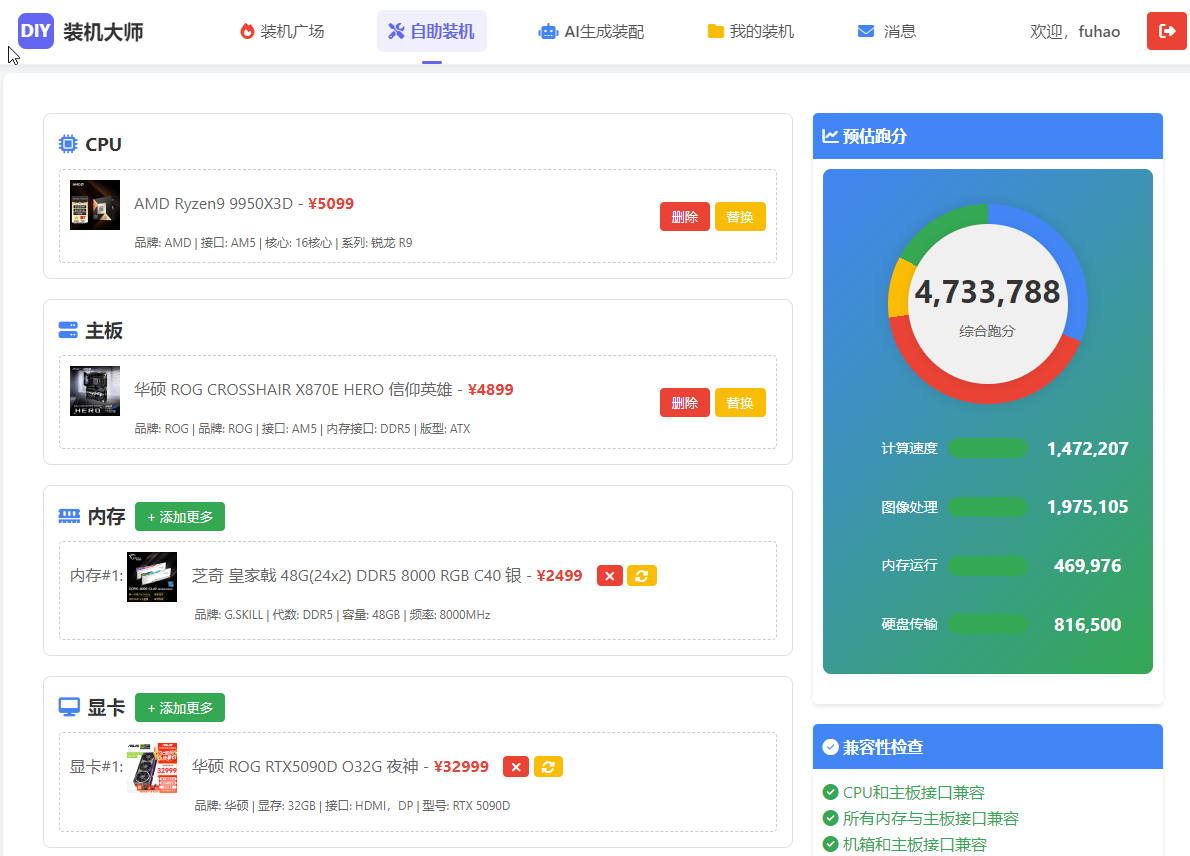 - 硬件兼容性检测:类似的装机配置单服务通常会具备硬件兼容性检测功能,diy.2u3u.com可能也会通过集成大数据和算法模型,实时更新硬件兼容性信息,确保用户选择的硬件组件之间能够相互兼容,避免因硬件不兼容而导致的问题。