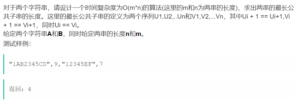 最大公共子串长度问题就是: