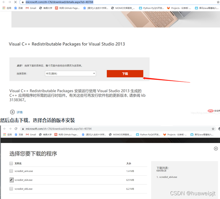 下载 vcredist 地址:https://www.microsoft.com/zh-CN/download/details.aspx?id=40784