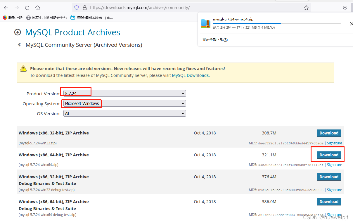 MySQL下载地址:https://downloads.mysql.com/archives/community