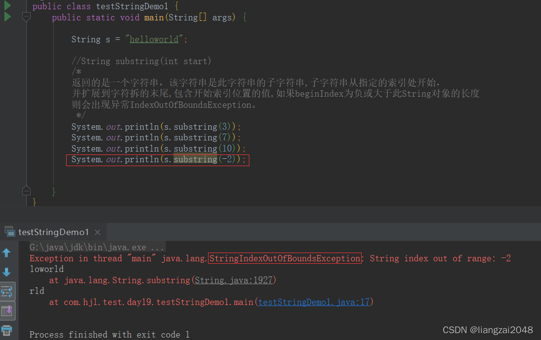 当我们不小心将length()-1的值写的大于字符串的长度,将会出现字符串截取下标越界异常。