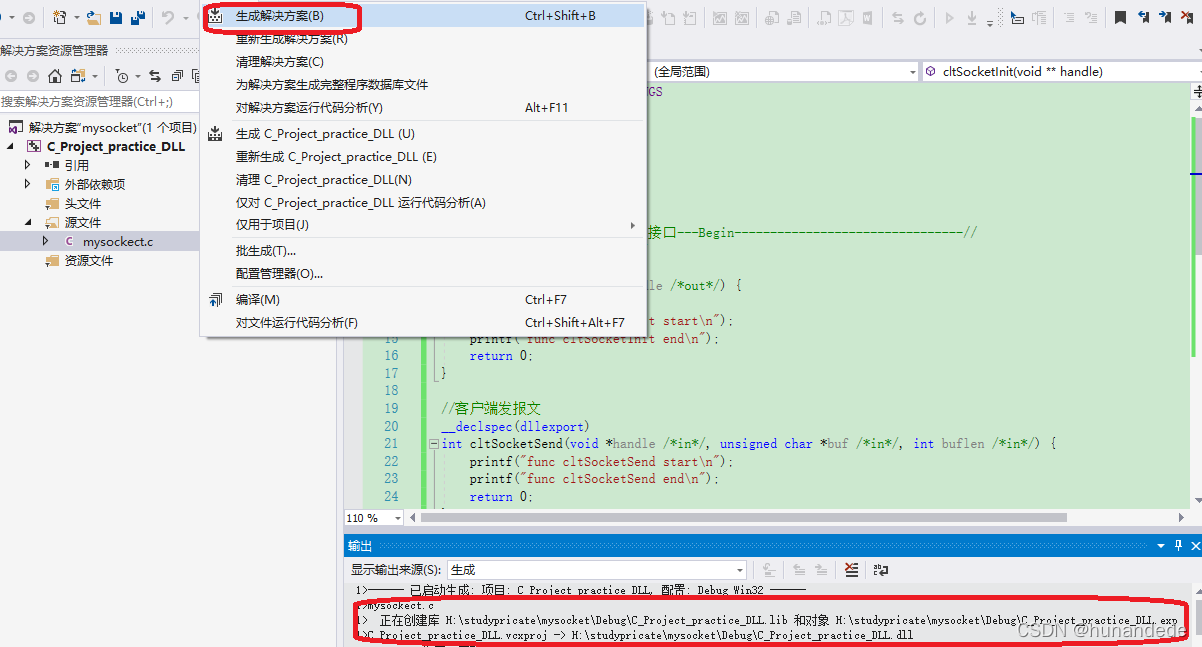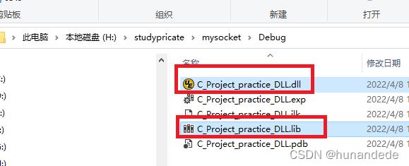 然后就会得到生成的dll 文件和lib 文件,这时候我们已经完成了生成dll 文件的工作