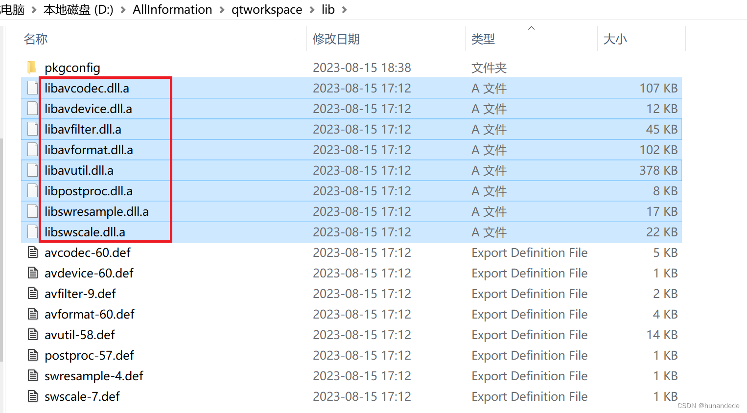 里面有三种文件后缀分别为:.lib、.def、.dll.a 。
