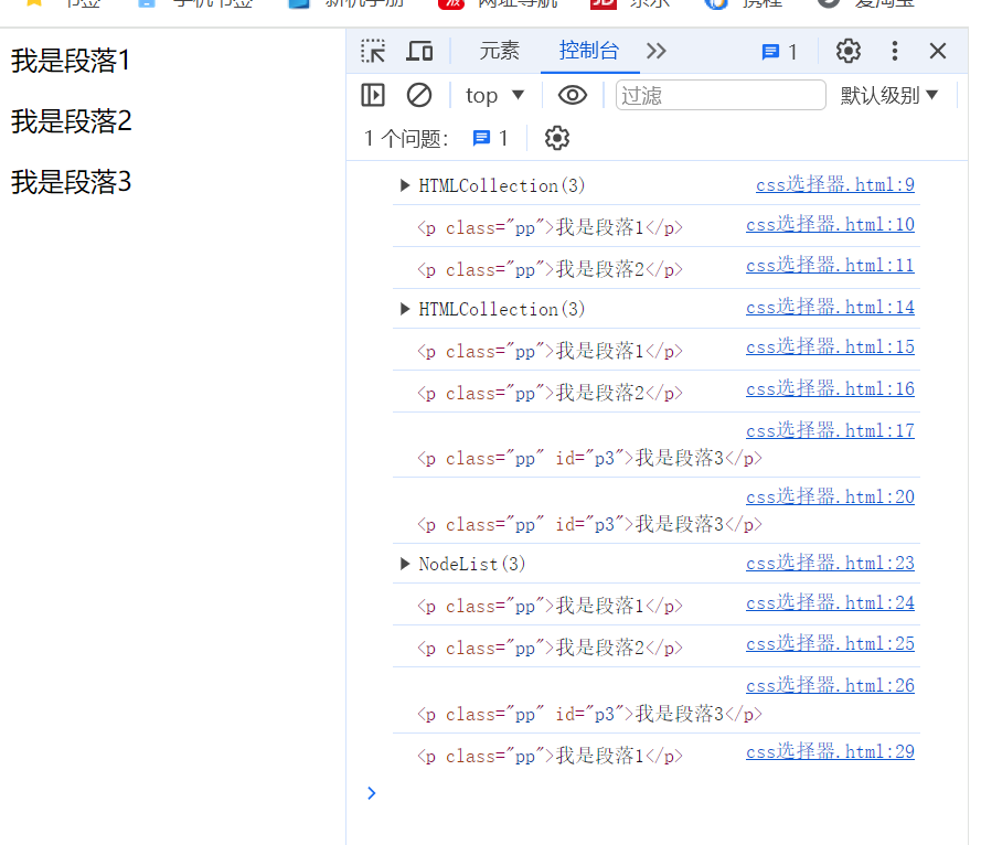 ④.querySelectorAll 通过CSS选择器获取节点,返回NodeList对象(包含所有匹配给定选择器的节点)