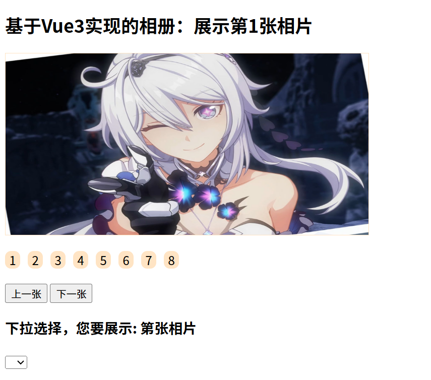 <h2>基于Vue3实现的相册:展示第{{ img.number }}张相片</h2>