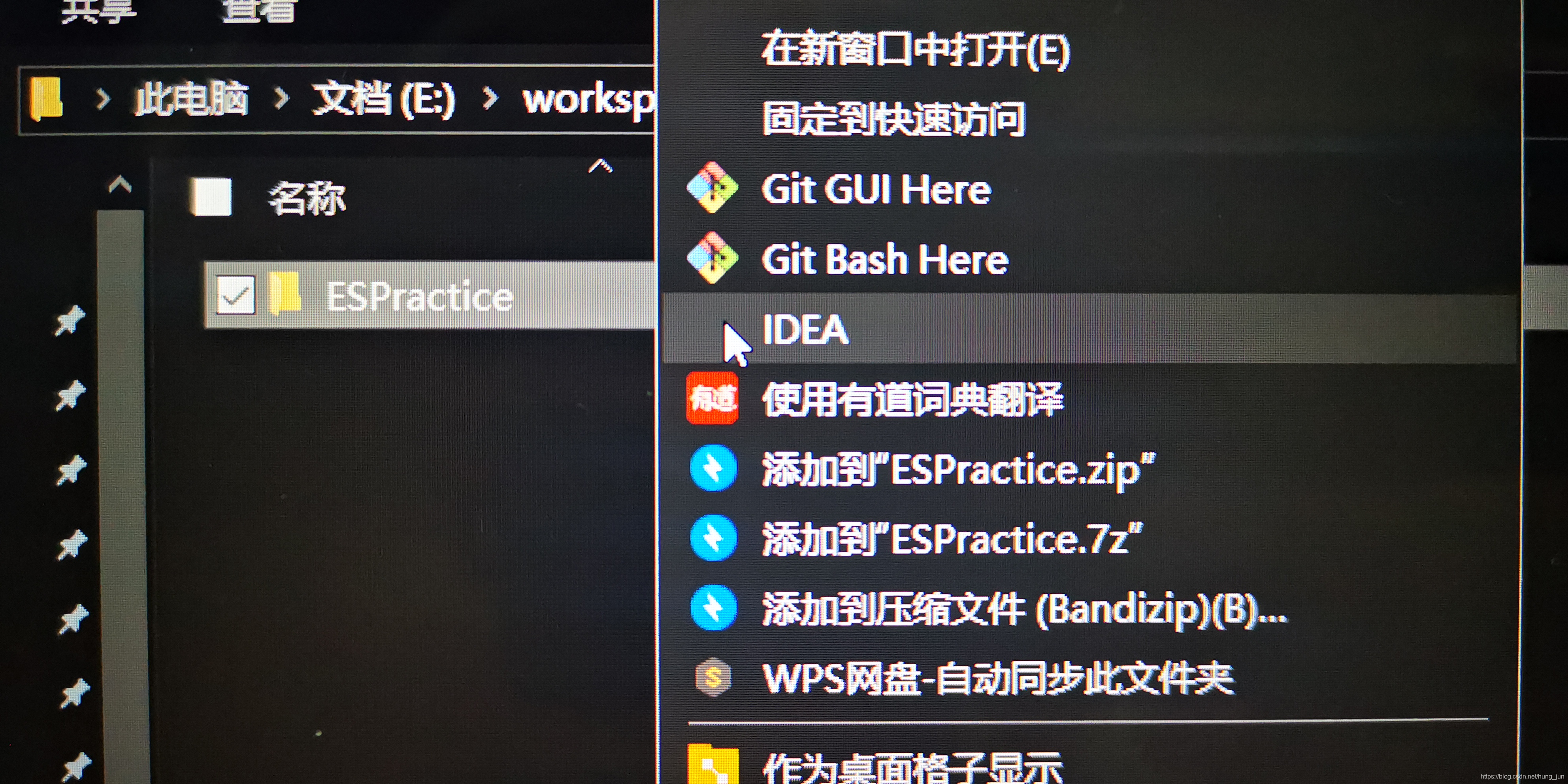 6.重启电脑后,选中文件夹,点击鼠标右键,选IDEA打开