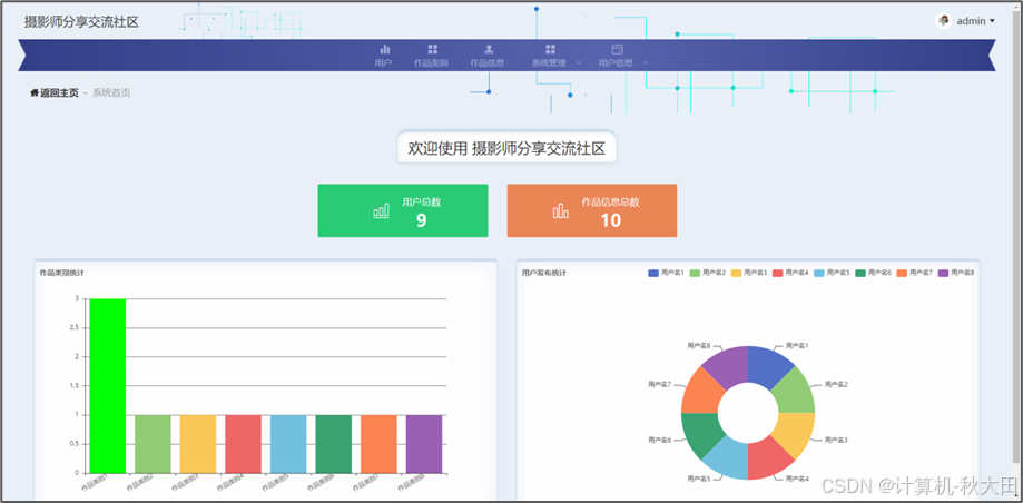 与其他的同类型系统相比,摄影师分享交流社区在流畅性,续航能力等方方面面都有着很大的优势。这就意味着摄影师分享交流社区的设计具有比其他系统更为出色的能力,可以更高效地完成对最新的用户信息、作品类别、作品信息等进行管理的功能。
