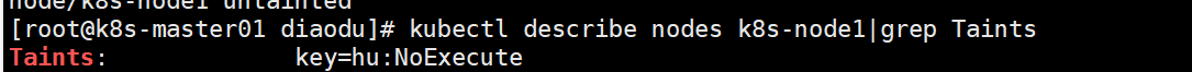 kubectl taint nodes k8s-node1 key=hu:NoExecute