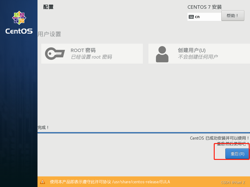 9.重启之后可以使用步骤6中设置的root用户和root密码进行登录: