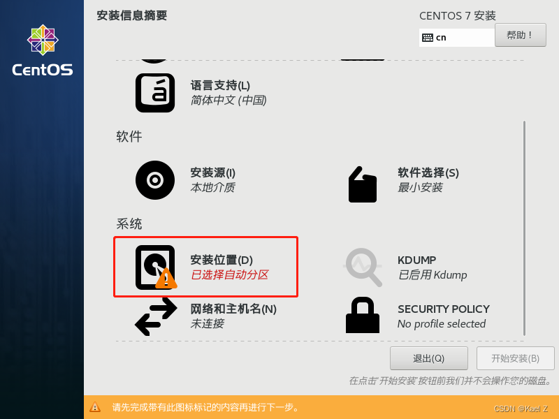 2.配置安装摘要信息, 单击红框选中部分系统>安装位置:
