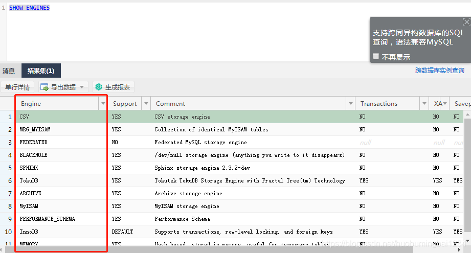 首先,我们可以通过 SHOW ENGINES 命令查看我们的存储引擎,我这里用的是阿里云rds数据库,也就是mysql5.6版本。