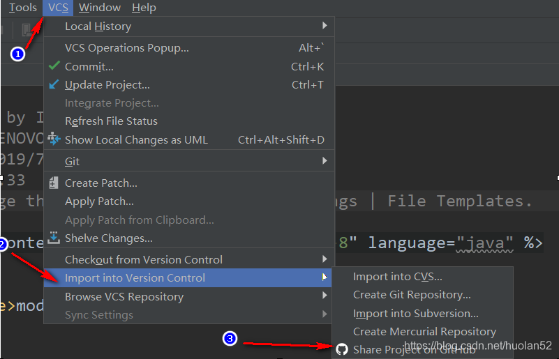 如果想要把IDEA中写的项目上传到IDEA中,那么则需要对进行下面的操作: