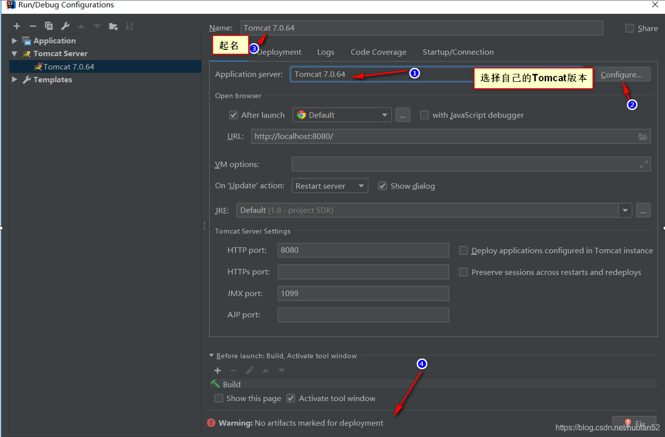 这个时候我们发现4标记处有警告,我们需要从deplyment中配置:
