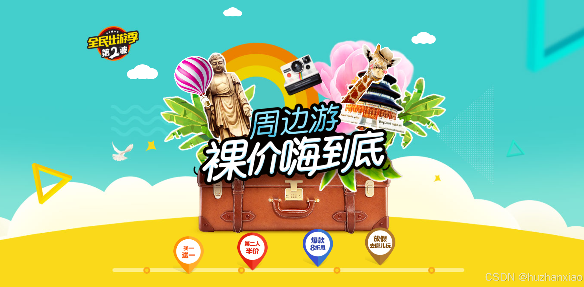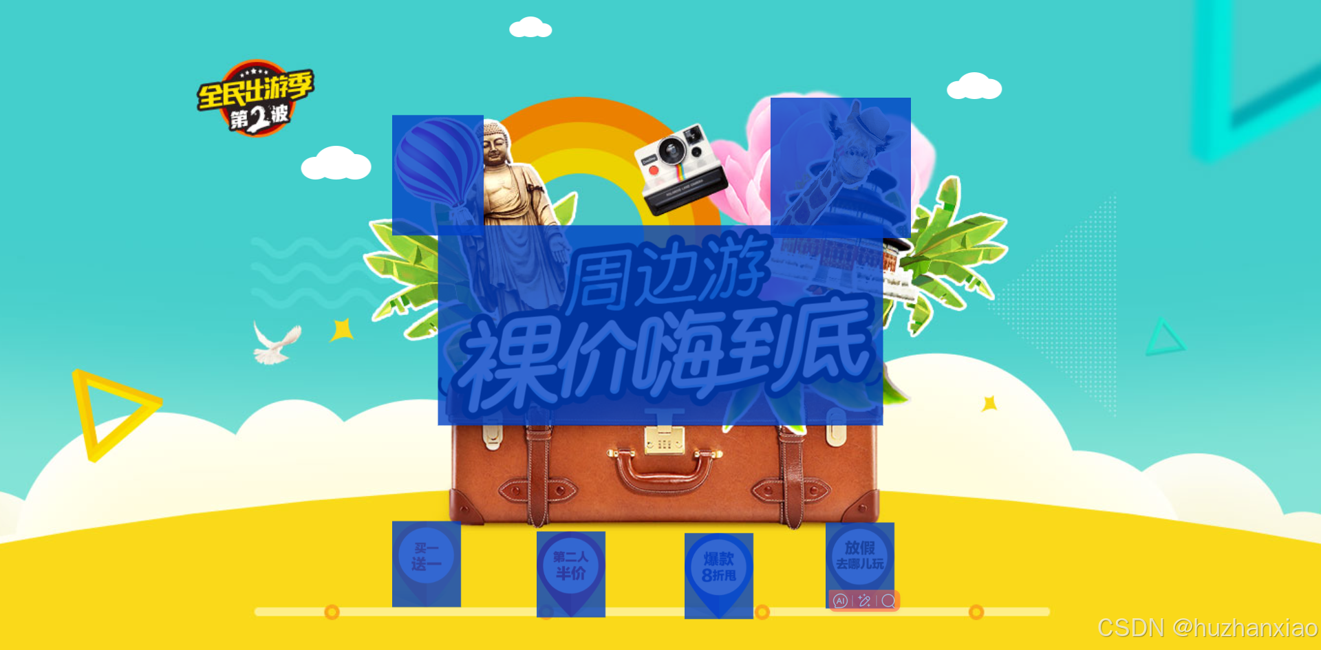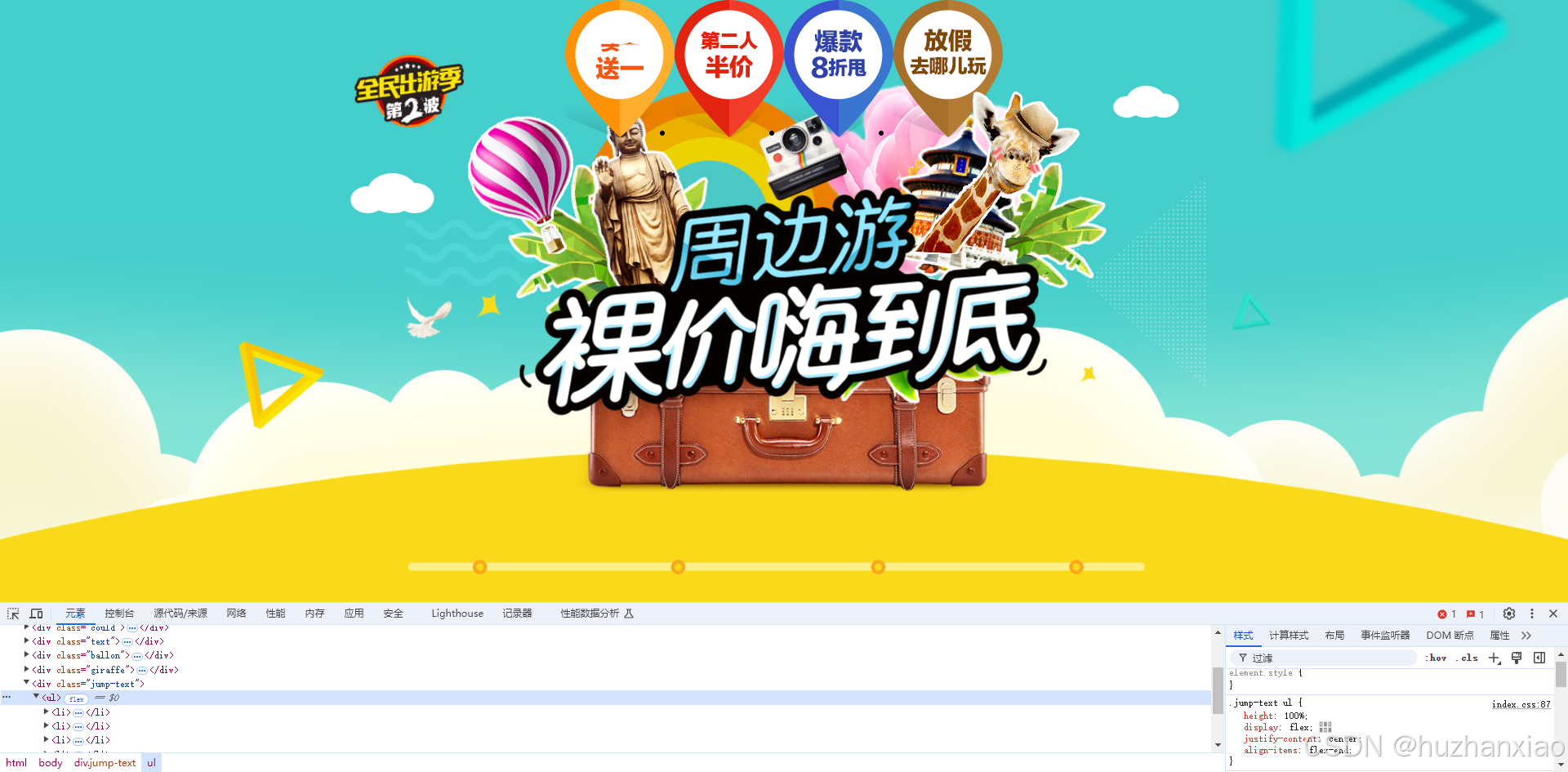 首先,我的思路是长颈鹿和热气球是两个div盒子,而下面的四个标签应该算一个ul嵌套li的结构